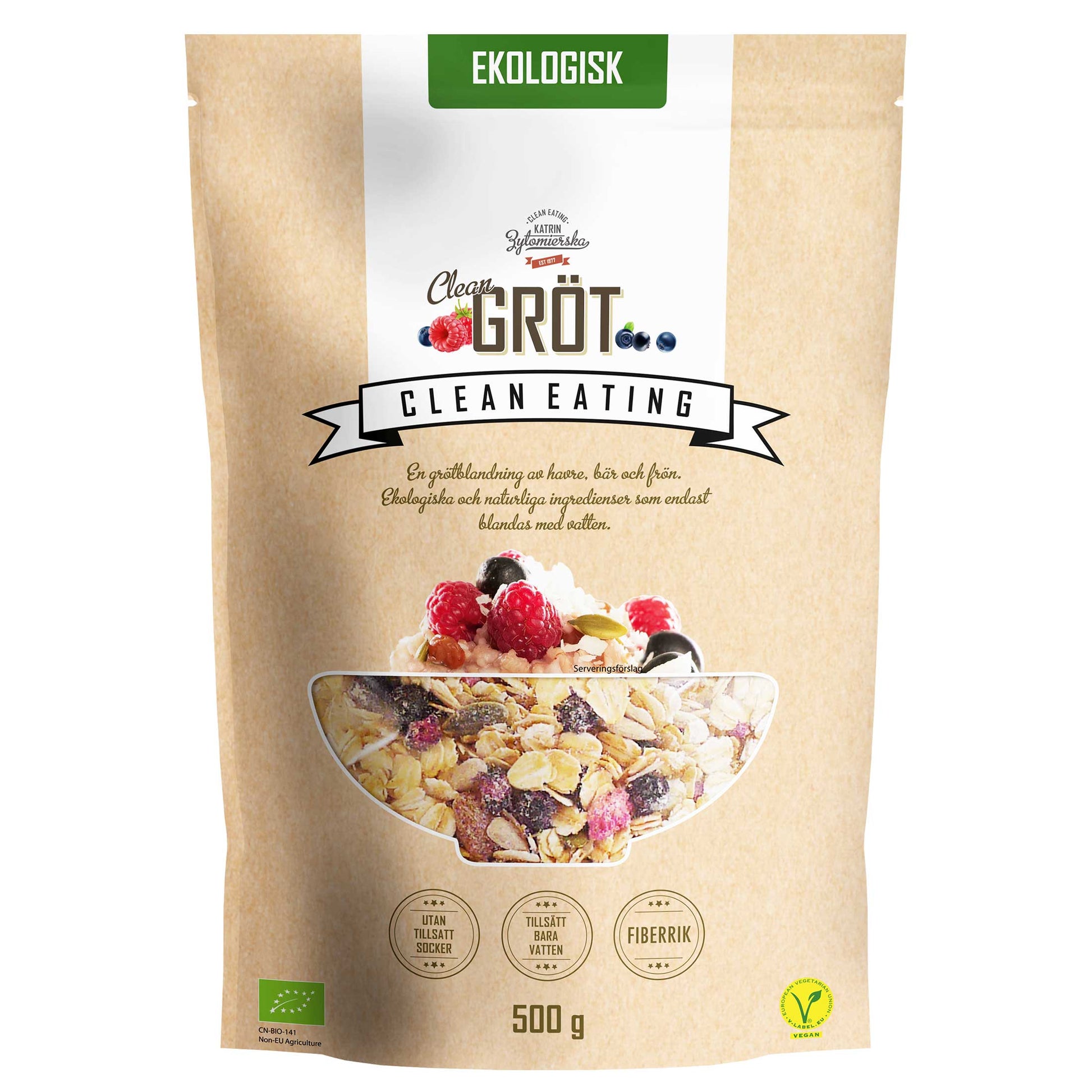 En grötblandning av havre, bär och frön. Ekologiska och naturliga ingredienser som endast blandas med vatten.
